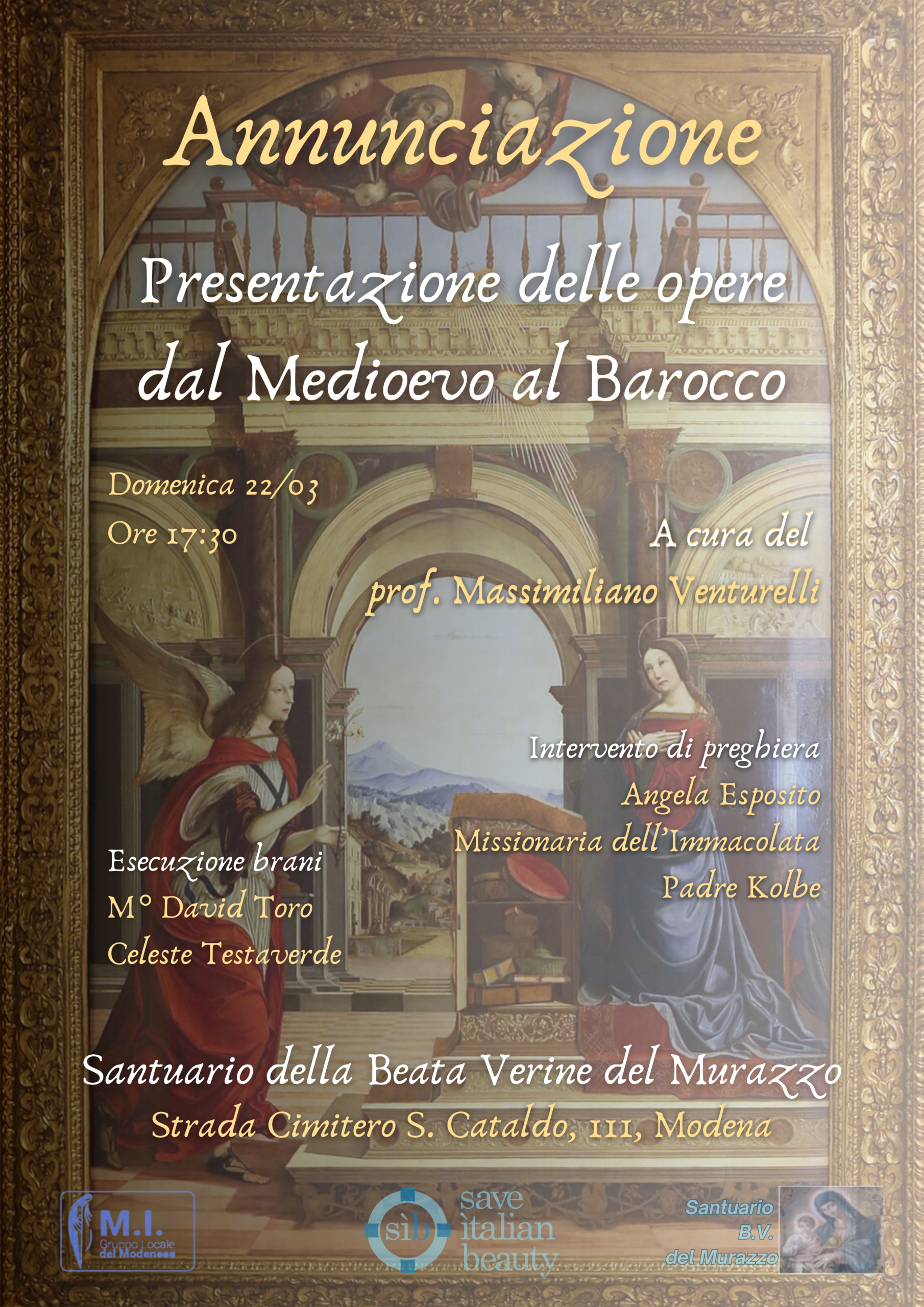 Domenica 23 marzo alle ore 17.30 il Santuario della Beata Vergine del Murazzo a Modena ospiterà un incontro dedicato alla rappresentazione artistica dell’Annunciazione, uno dei temi più affascinanti e ricchi di significato della storia dell’arte.