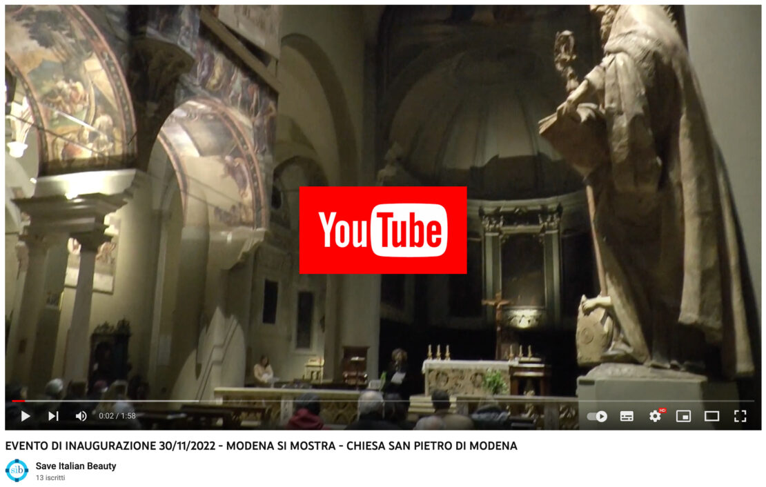 Modena si mostra è il nuovo progetto culturale lanciato da Save Italian Beauty il 30 novembre 2022. Il focus è la riscoperta del patrimonio culturale del territorio modenese attraverso nuove metodologie di comunicazione e interazione con il pubblico; in modo particolare chiese, abbazie, monasteri, pievi, palazzi, castelli e ville di rilevanza storico-artistica per farne risaltare pregi e ricchezze e per concentrare l’attenzione sull’importanza della loro conservazione. il punto di partenza è stata la chiesa di San Pietro: all’interno è presente un patrimonio di opere d’arte inestimabile tra le quali spicca l’eleganza e la raffinatezza dello scultore modenese Antonio Begarelli, grande maestro del rinascimento emiliano.