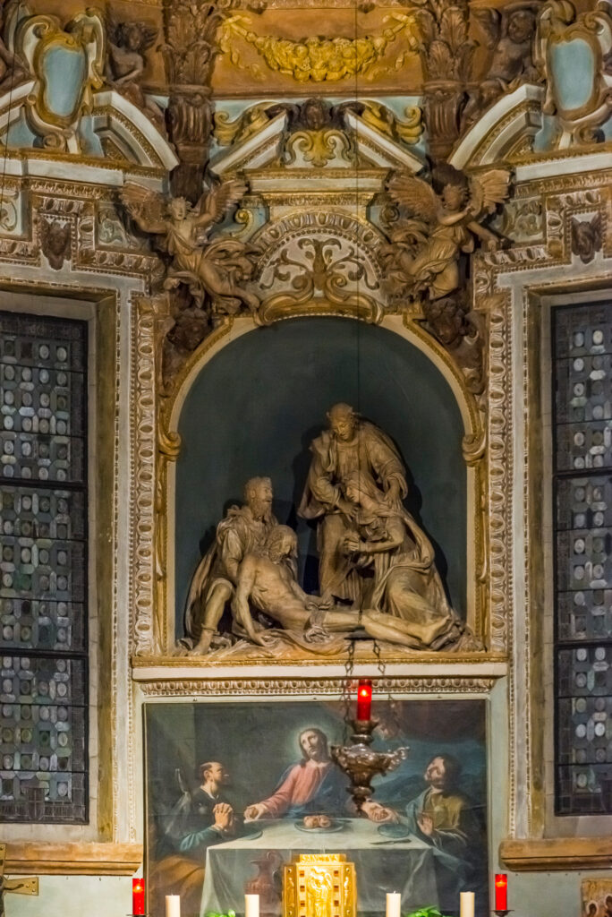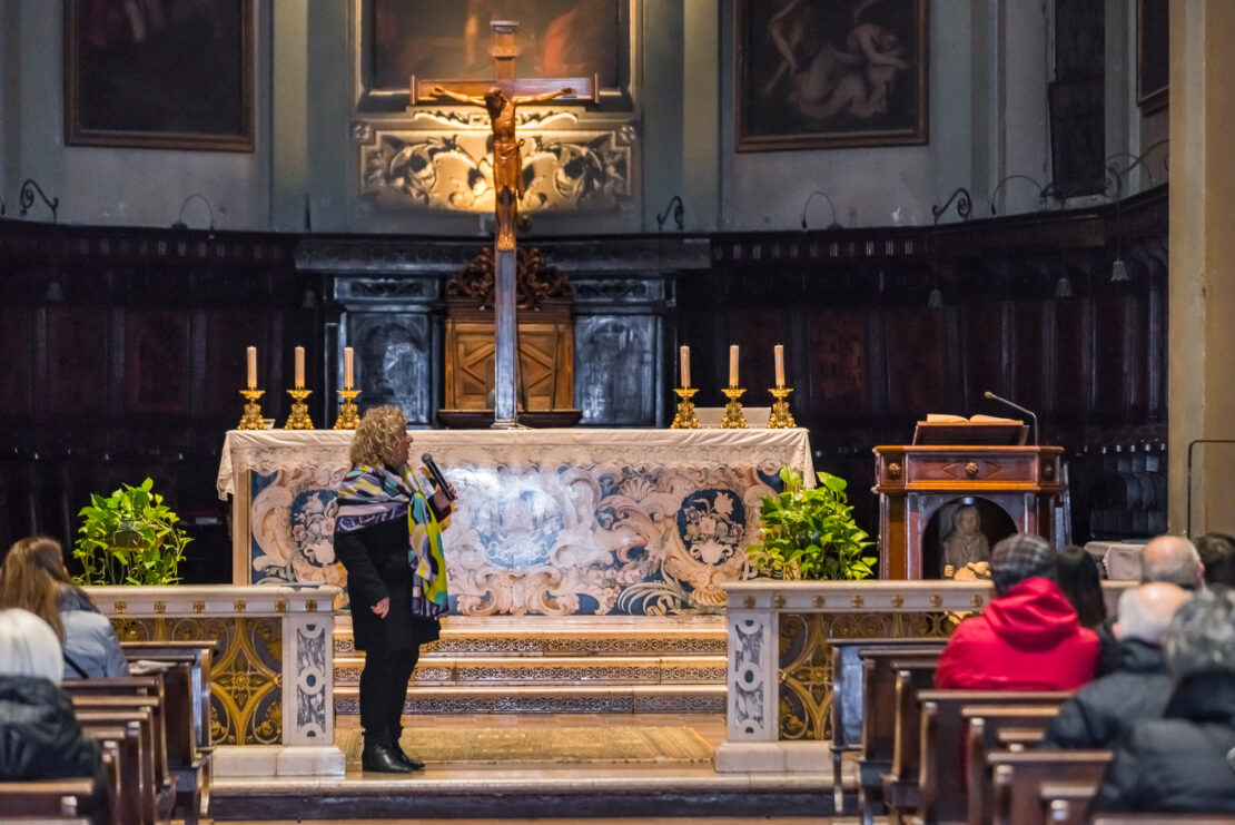 Merita grandissima attenzione sia per il rivestimento di colore bianco da cui l’opera, non ancora sottoposta a intervento di restauro, si trova ancora rivestita come lo erano tutte le altre sculture di Begarelli per renderle simili al marmo e per eliminare ogni equivoco di realismo, sia per il contratto con il quale i monaci l’avevano commissionato allo scultore secondo il quale le statue centrali dovevano essere colorate. Il primo evento è stato realizzato grazie al contributo di Banca Generali Private, con il patrocinio del Comune di Modena e della Diocesi di Modena. Sono intervenuti: Don Paolo Monelli della parrocchia di San Francesco e San Pietro, Massimiliano Venturelli, responsabile di Save Italian Beauty, l’assessora del Comune di Modena Ludovica Carla Ferrari, Maria Virginia Quintero di Banca Generali Private, la professoressa Elena Corradini docente di museologia e restauro di Unimore, Michela D’Onofrio di eArs, società specializzata nella produzione podcast.